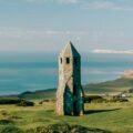A piece of food wrapped in aluminum foil sits on a plate. The foil is shiny and metallic, and the plate is blue. The food is likely a type of meat or vegetable, and it is cooked or prepared for eating
