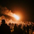 A man is cooking meat on a grill. The meat is being held by the man’s hand and is being cooked on a grill