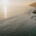 A man is preparing a chicken in a pan. The chicken is in the pan and the man is touching it
