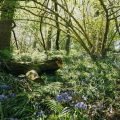 A woman is cutting carrots on a wooden cutting board. She is wearing a purple sweater and a silver bracelet