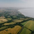 A view of a beach with a rocky shoreline and a small town in the background – Seaview